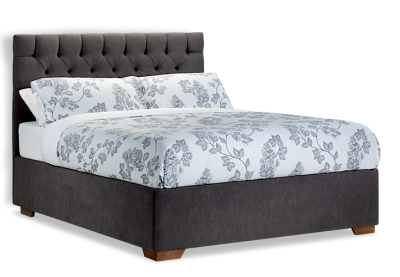 Grey bed, leather heading wooden, cushion pillow, chipboard, png